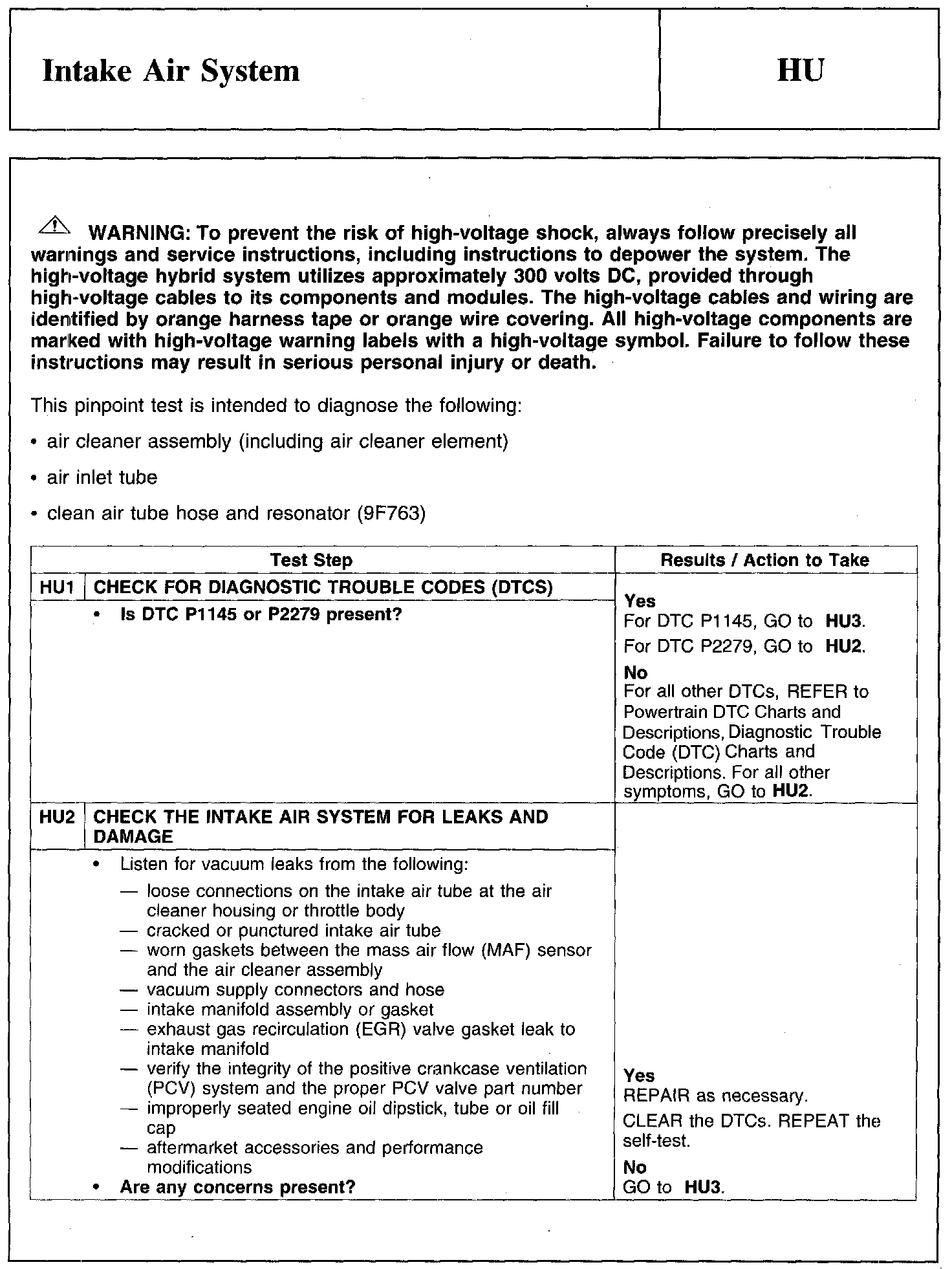 PINPOINT TEST HU: INTAKE AIR SYSTEM