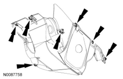 1. With the vehicle in NEUTRAL, position it on a hoist. For additional information, refer to Vehicle Jacking and Lifting.