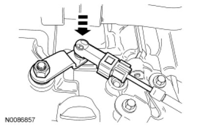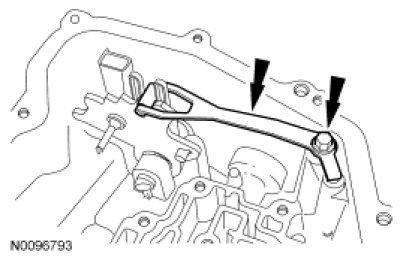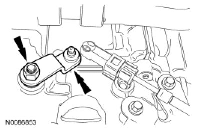 14. Connect the selector lever cable end to the manual control lever with the manual control lever and selector lever in DRIVE. Check selector lever cable adjustment. For additional information, refer to Automatic Transmission/Transaxle.