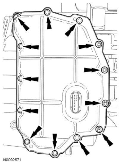 9. NOTICE: Inspect the main control cover grommet to make sure that the seal is on the inside of the main control cover. Transmission fluid leak will occur.
