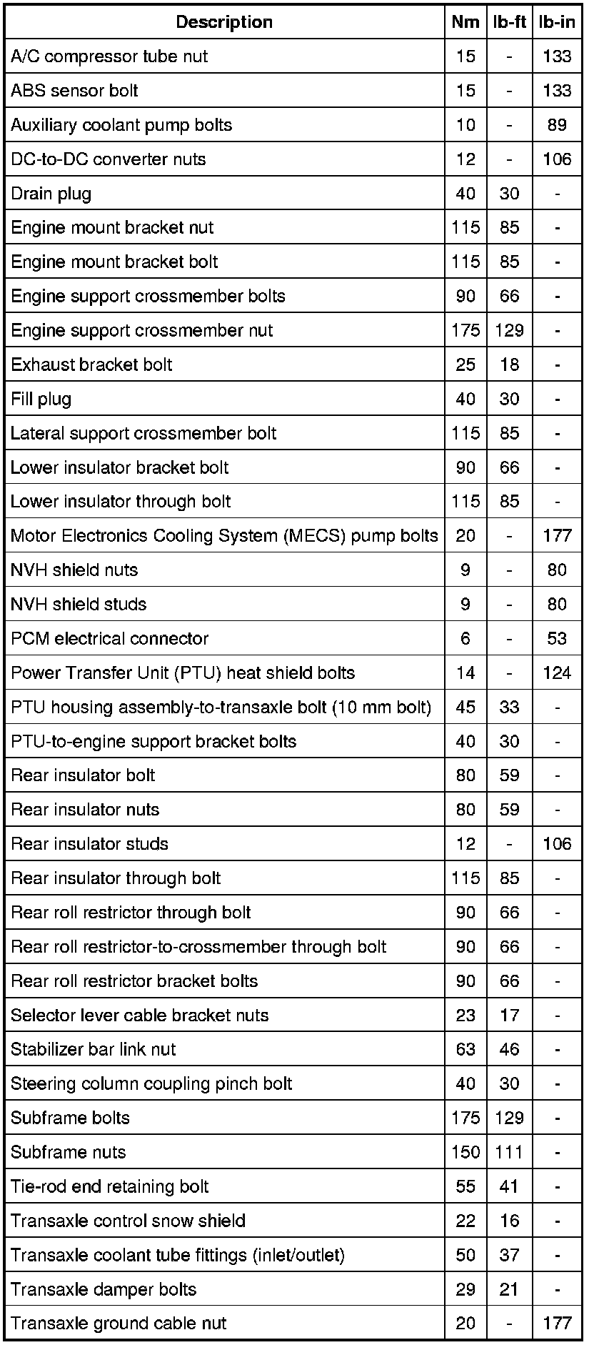 Torque Specifications