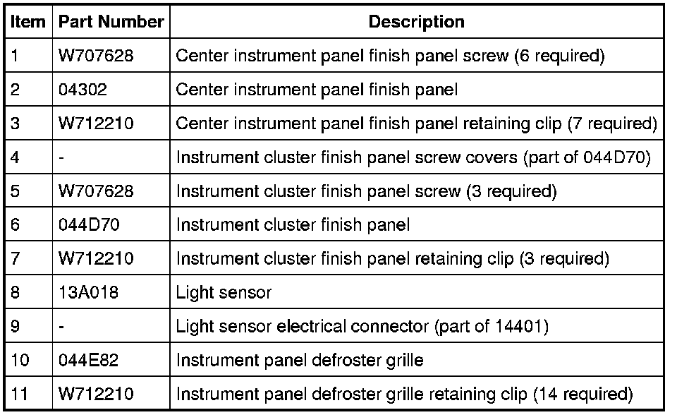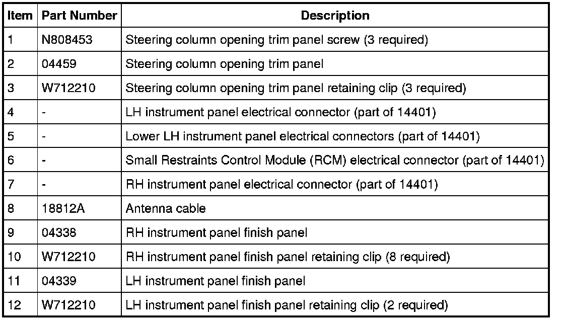 Instrument Panel Trim Panels, Finish Panels and Electrical Connectors