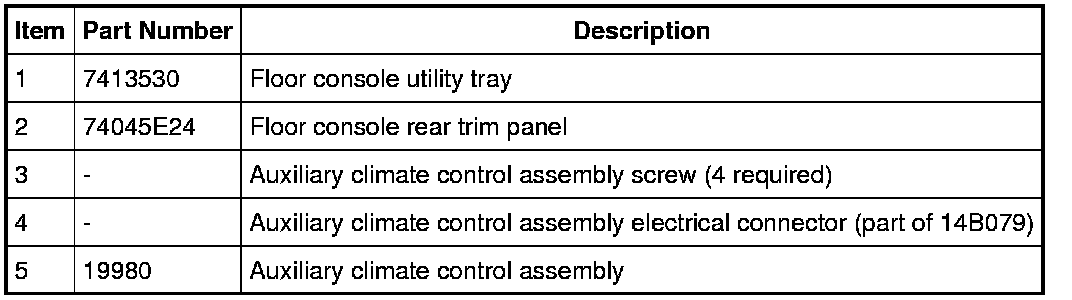 4. Disconnect the auxiliary climate control assembly electrical connector and remove the auxiliary climate control assembly.