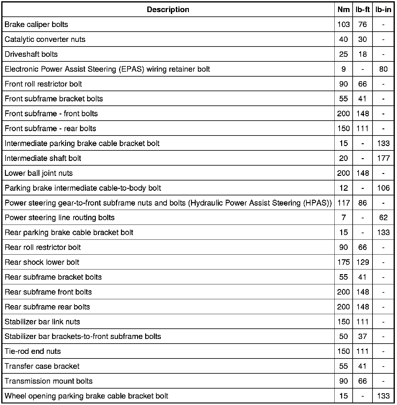 Torque Specifications