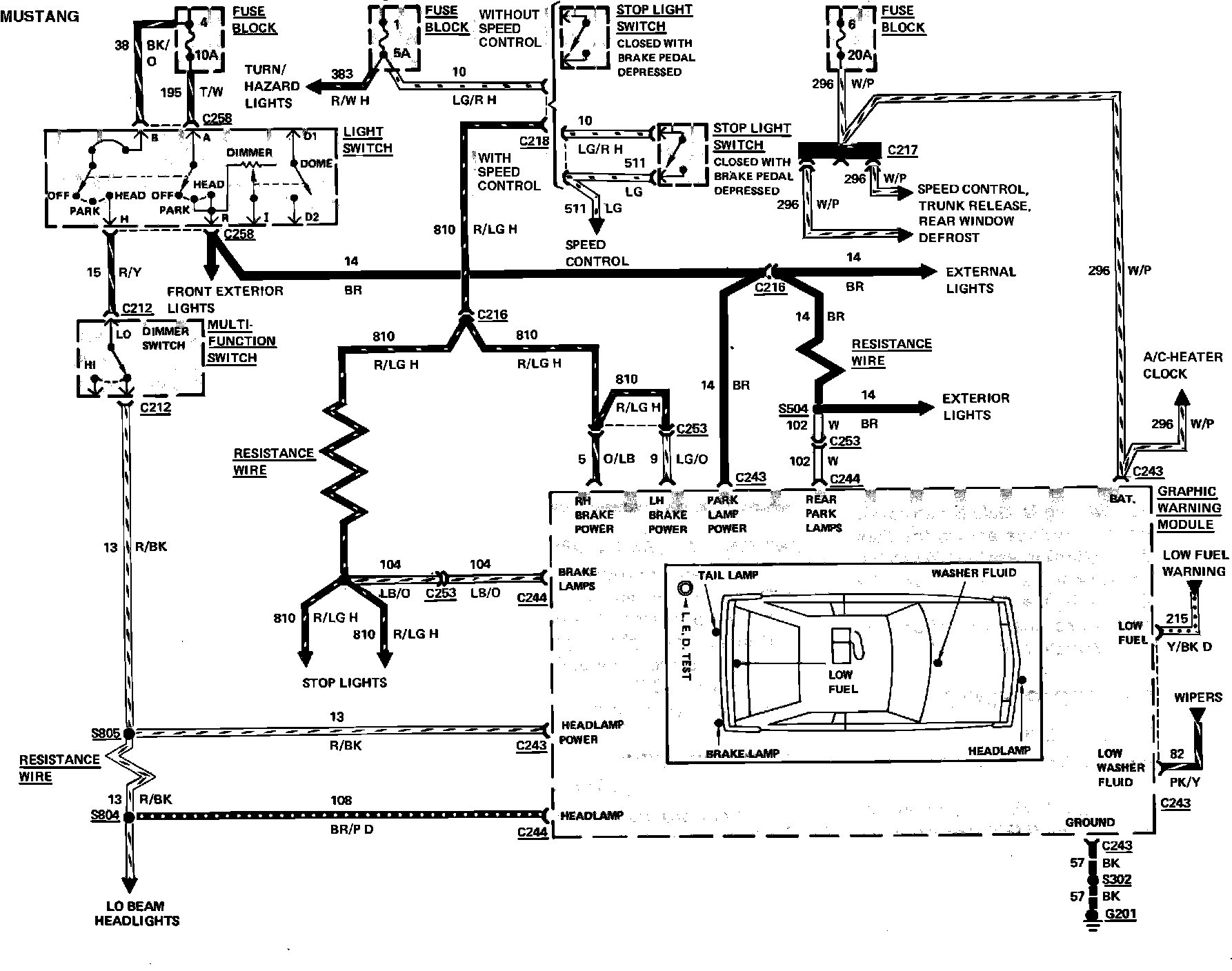 Fig. 36 Graphic warning module wiring circuit. 1983-84 Mustang: