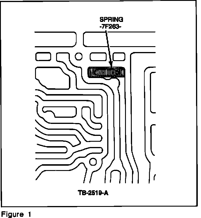 ISSUE: A spring was installed in the transmission case worm trail to trap large machining chips and reduce engine stall complaints caused by the stuck converter lock-up valve in the main control of the transmission. This spring should not be installed in transmissions built prior to 8/21/91.