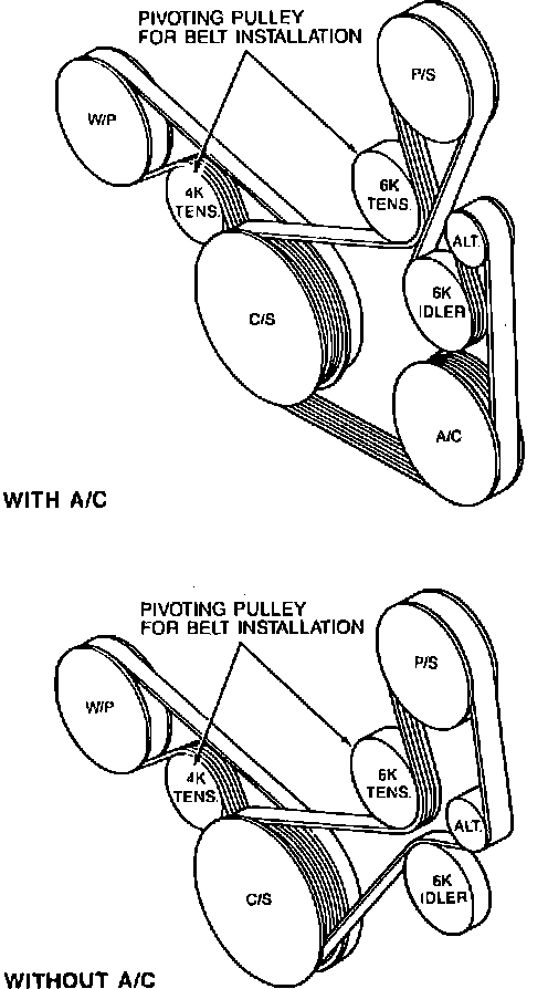 Mark direction of rotation on drive belt with a marking pen to ensure correct installation if the belt is to be reused. Failure to do so may result in belt noise.
