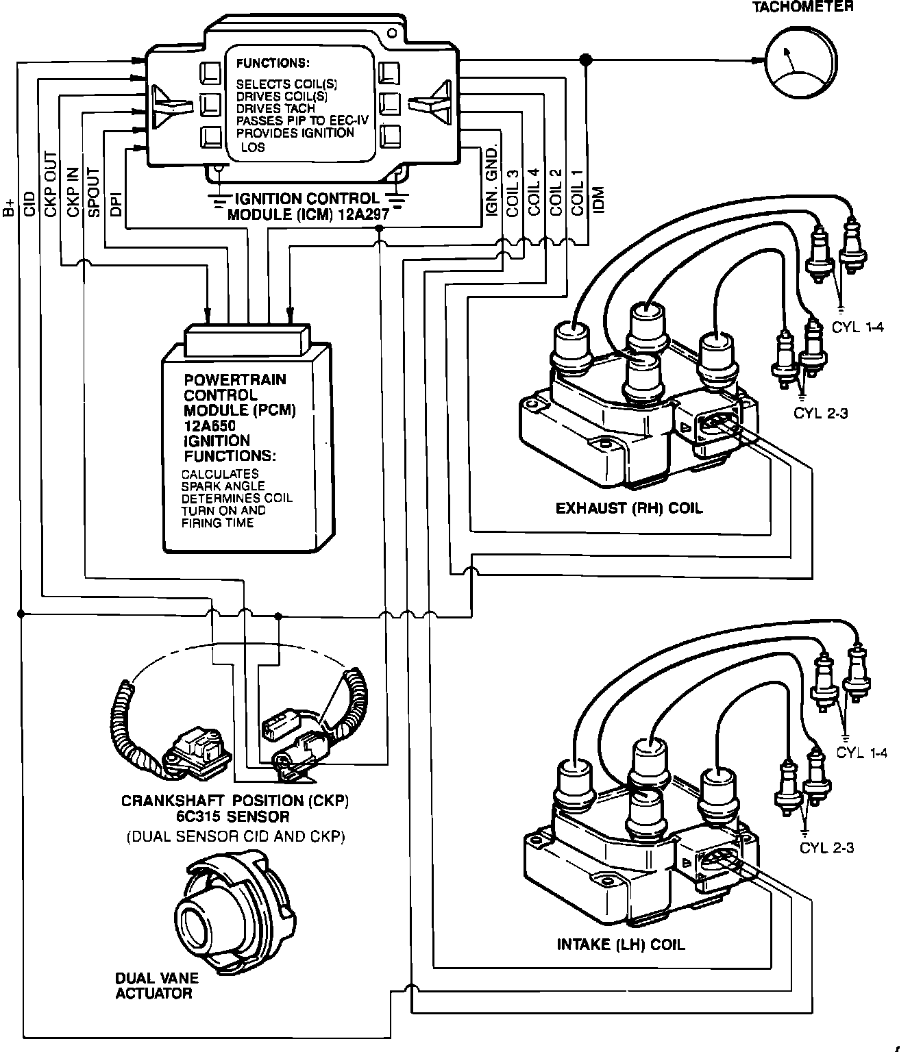 The PCM computes the spark angle for the ignition system using the Profile Ignition Pickup (PIP) signal to establish base timing.