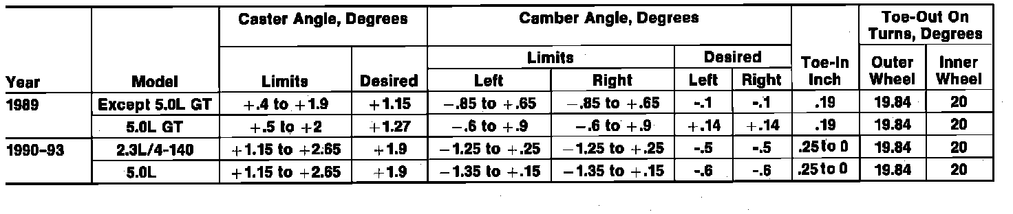 Wheel Alignment Specifications: