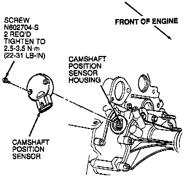 6. Install CMP sensor and retaining screws. Tighten screws to 2.5-3.5 Nm (22-31 in lb).