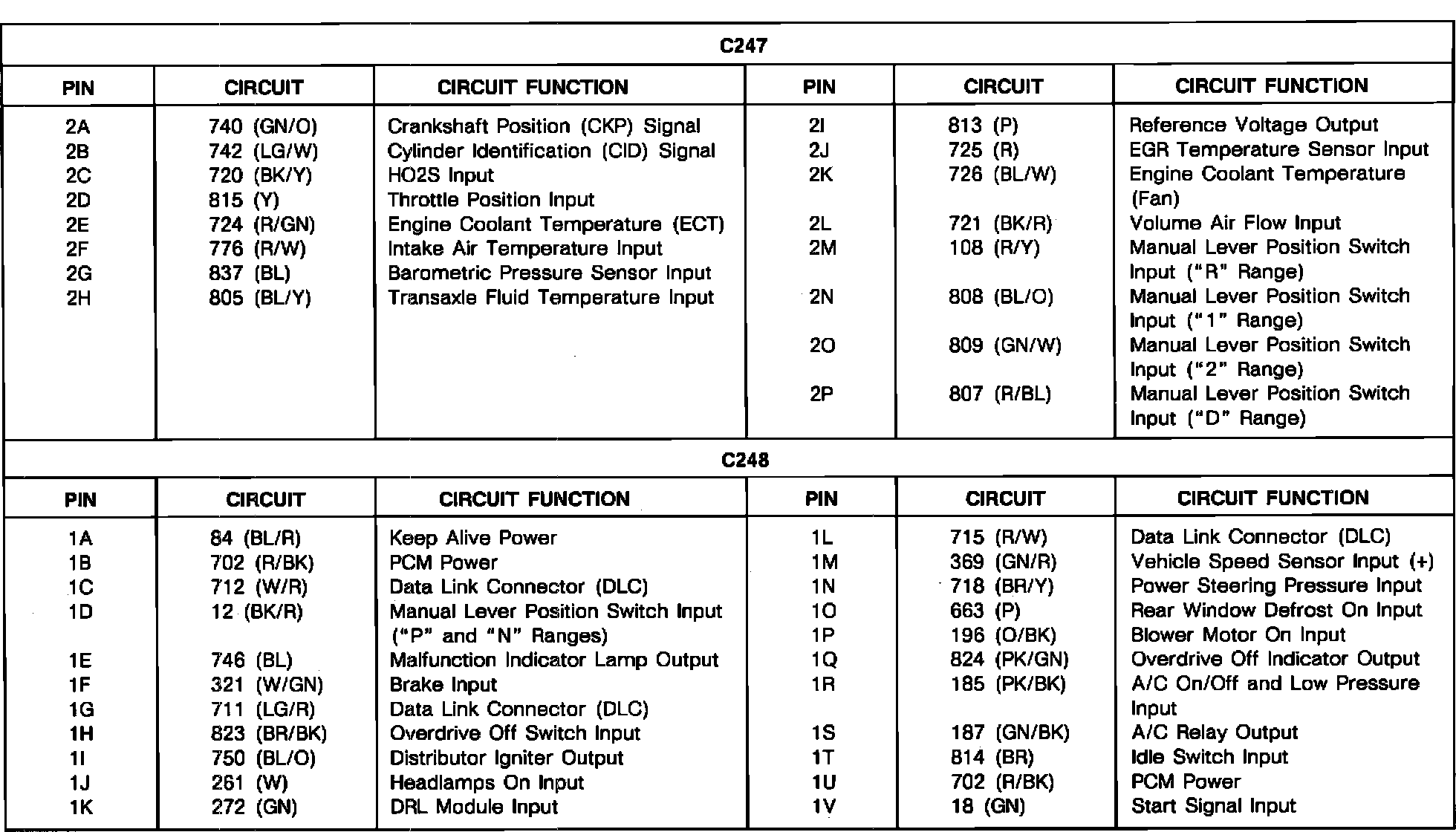 PCM Connector Pin Chart (Part 1):