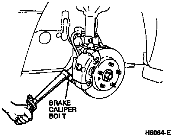 4. Install the brake caliper bolt. Tighten the brake caliper bolt to 44-49 N-m (33-36 lb ft).