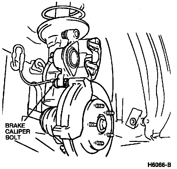 NOTE: To provide the necessary clearance, it may be necessary to pull slightly outward on the front disc brake caliper.