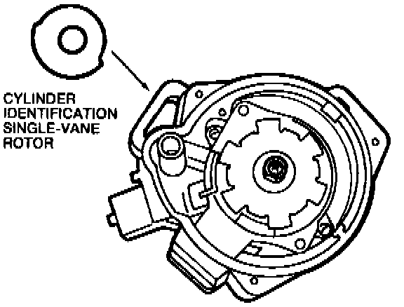 A single vane rotor cap spins according to camshaft speed. As it rotates through a magnetic Hall Effect pickup switch, the sensor detects the opening on the rotor cap and sends an input signal to the PCM.