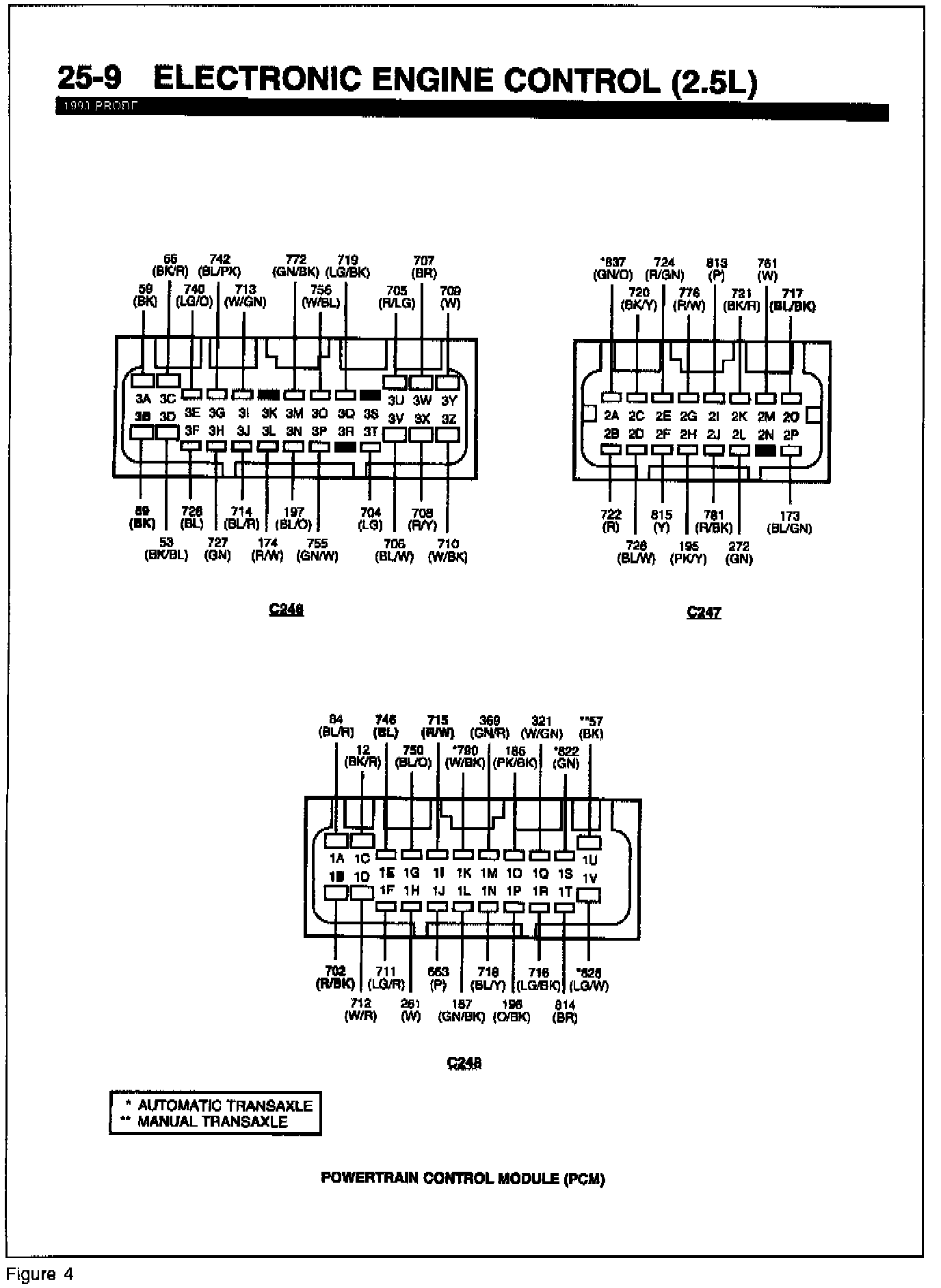 3. Disconnect PCM Connectors C248, C247, and C246. Take the winding black electrical tape off the PCM main harness, Figure 1.