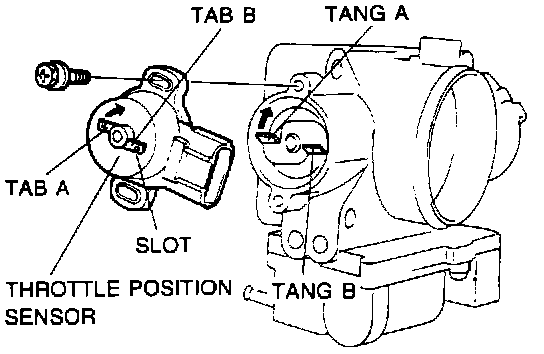 1. Open the throttle slightly to align the tab A and tab B of the TP sensor to the throttle body.