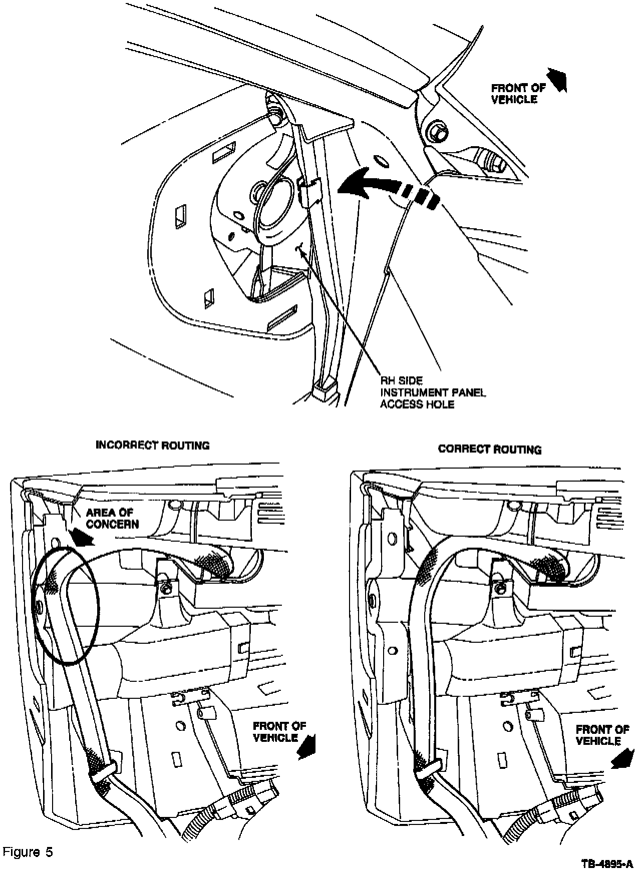 ^ Wires may be pinched/cut between instrument panel and body on RH side behind glove compartment.