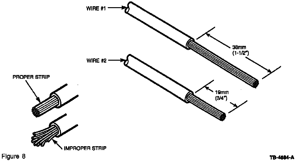 5. Slip Heat Shrink Tubing (WT-5627-A) over cut wire as shown in Figures 8-12.