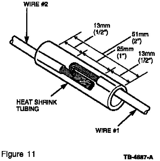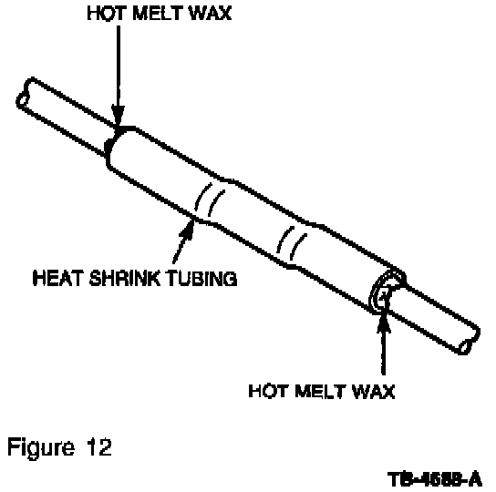8. Position spliced wire so that shrink tubing can be positioned over soldered splice as shown in Figures 8-12.