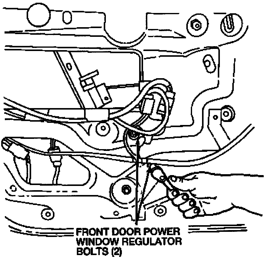 2. Remove the two front door power window regulator bolts.