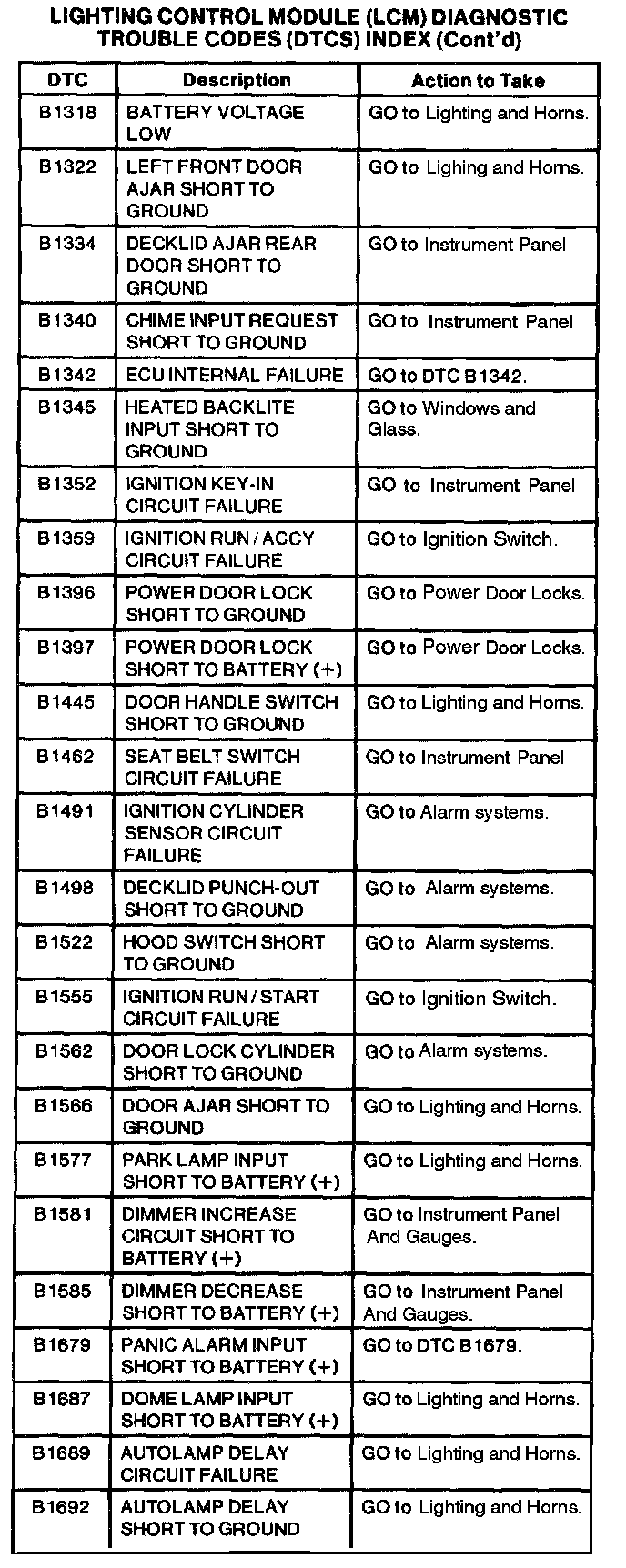 Lighting Control Module DTC Index Part 2 Of 3: