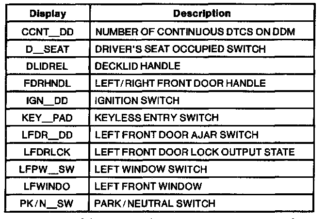 Driver Door Module PID Index