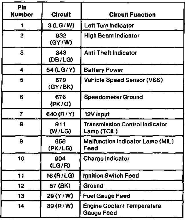 Instrument Cluster Connector C1 Part 2 Of 3: