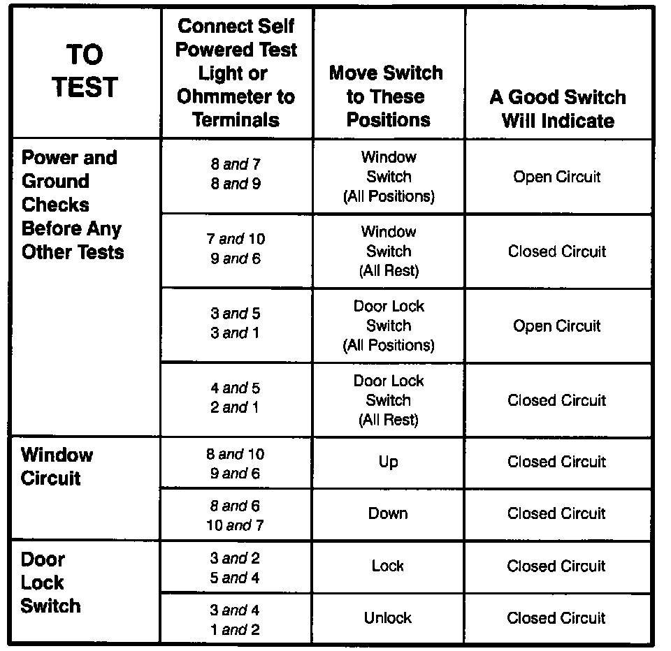 Right Window/door Lock Control Switch-component Testing Procedure: