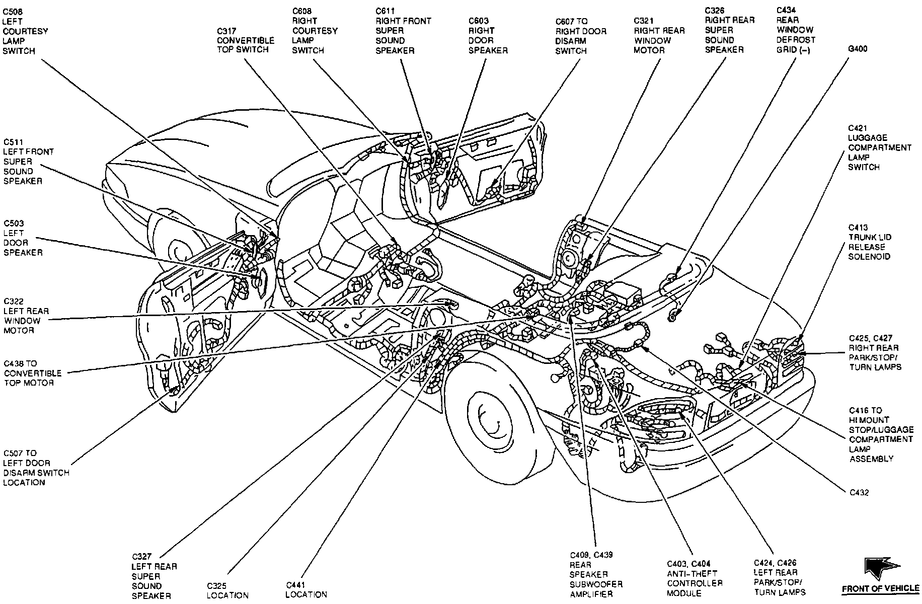The Anti-Theft Controller Module is located at the LH rear of the trunk, behind trim panel.