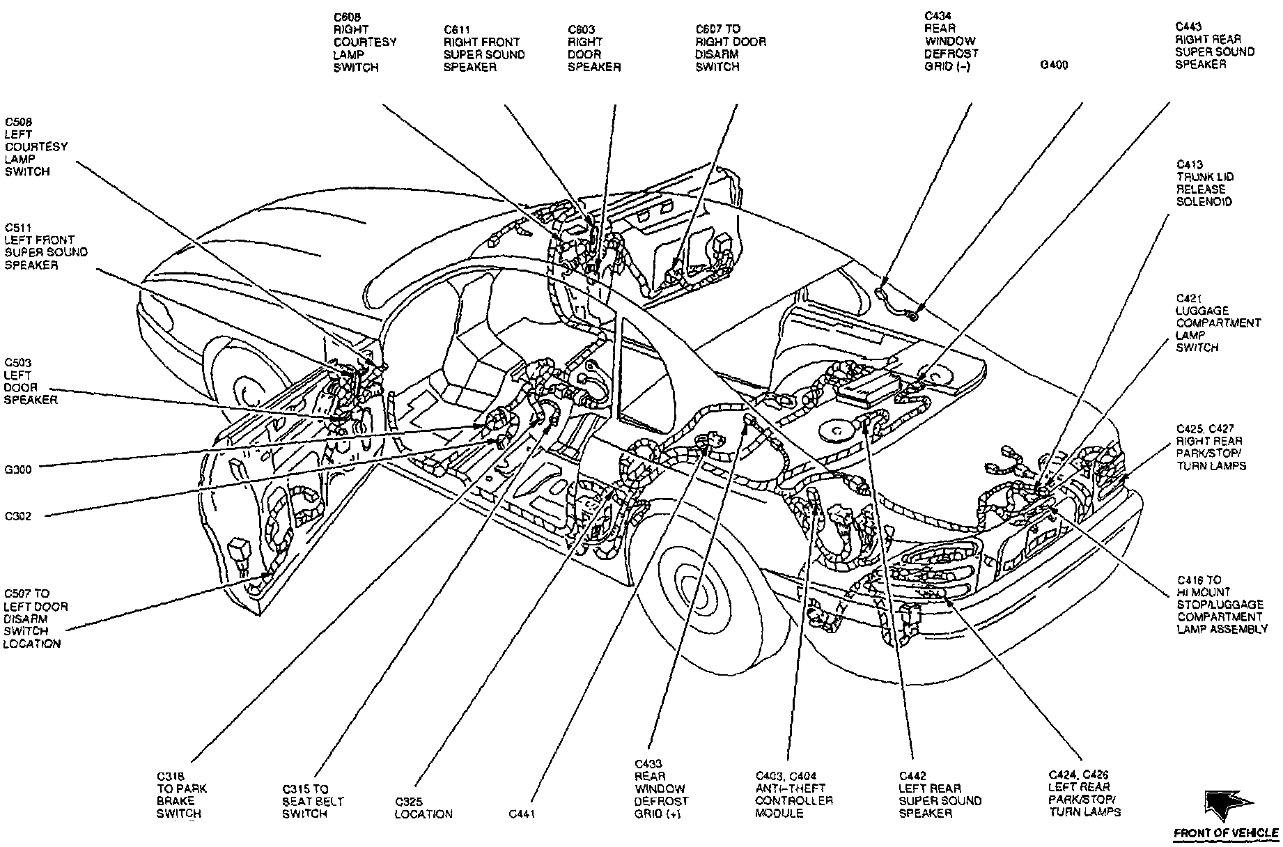 The Anti-Theft Controller Module is located at the LH rear of the trunk, behind trim panel.