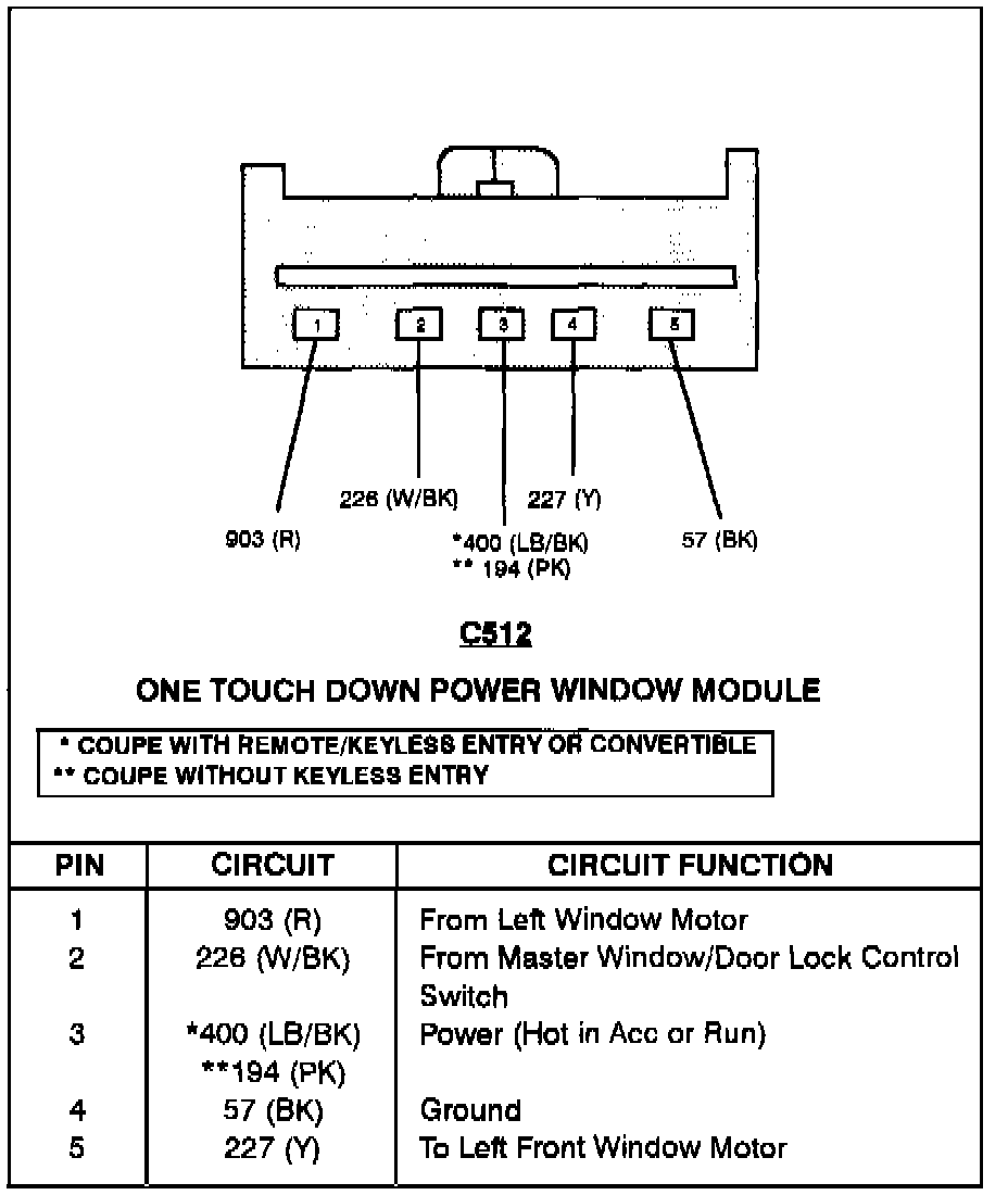 One Touch Down Power Window Module: