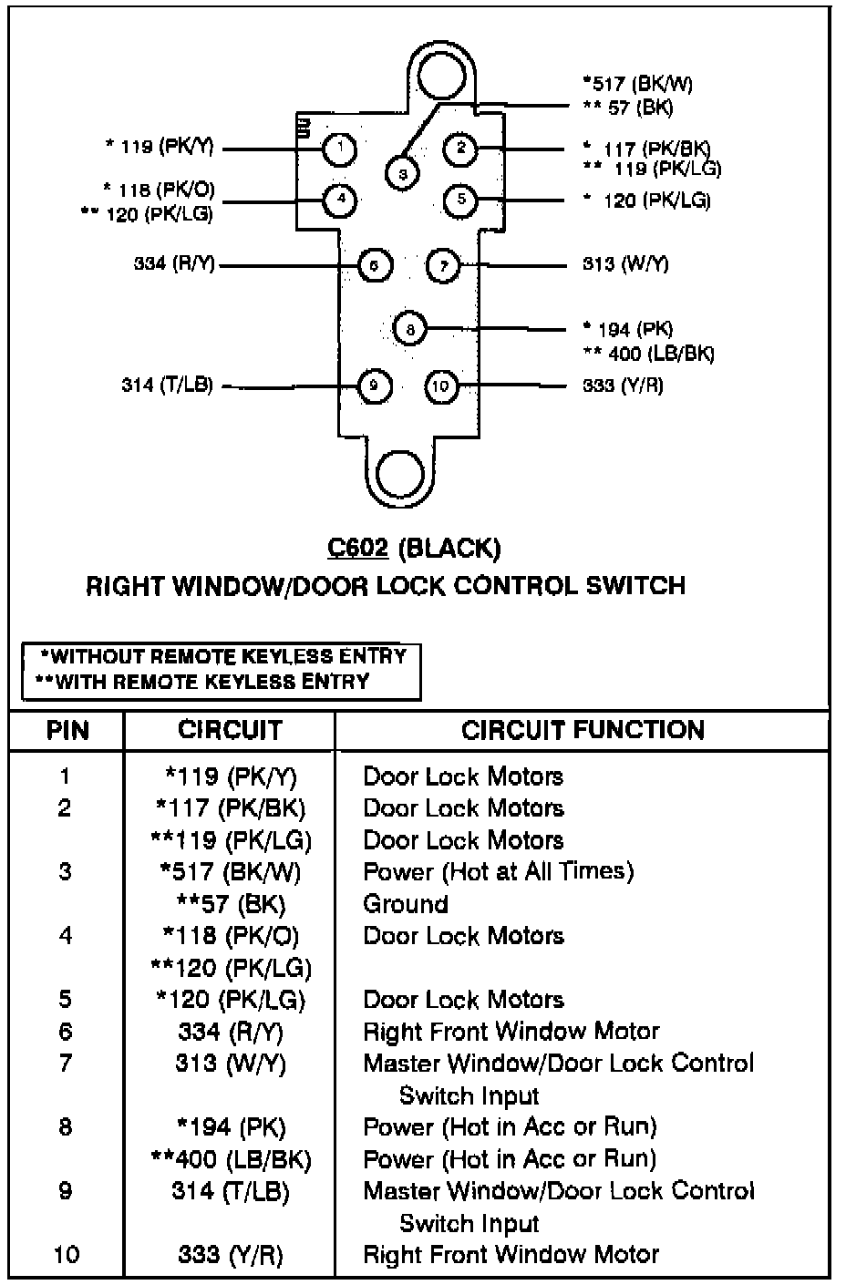 Right Window/Door Lock Control Switch: