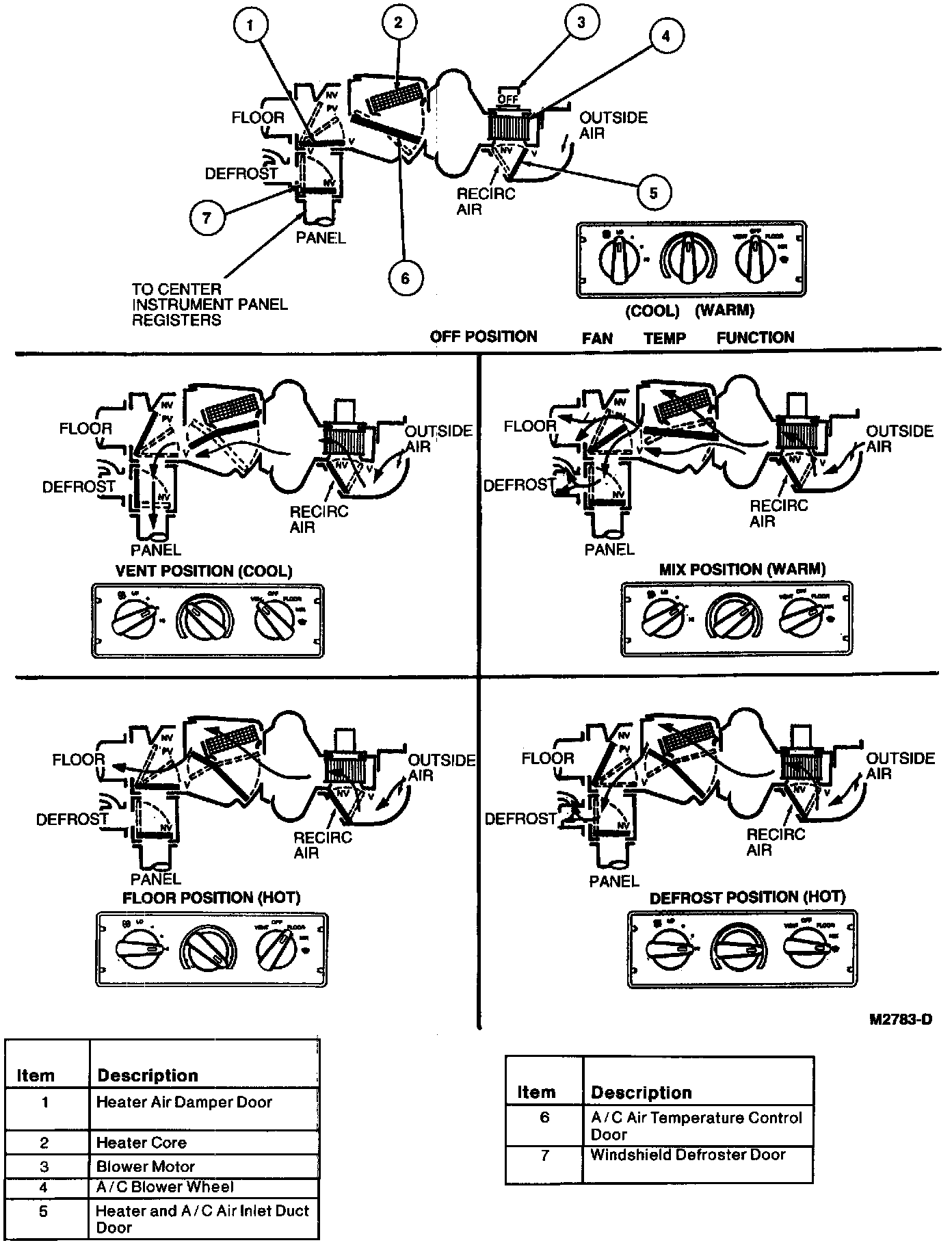 - Air is finally directed to the heater outlet floor duct, windshield defroster hose nozzle or the instrument panel A/C registers, according to the function selector knob position.