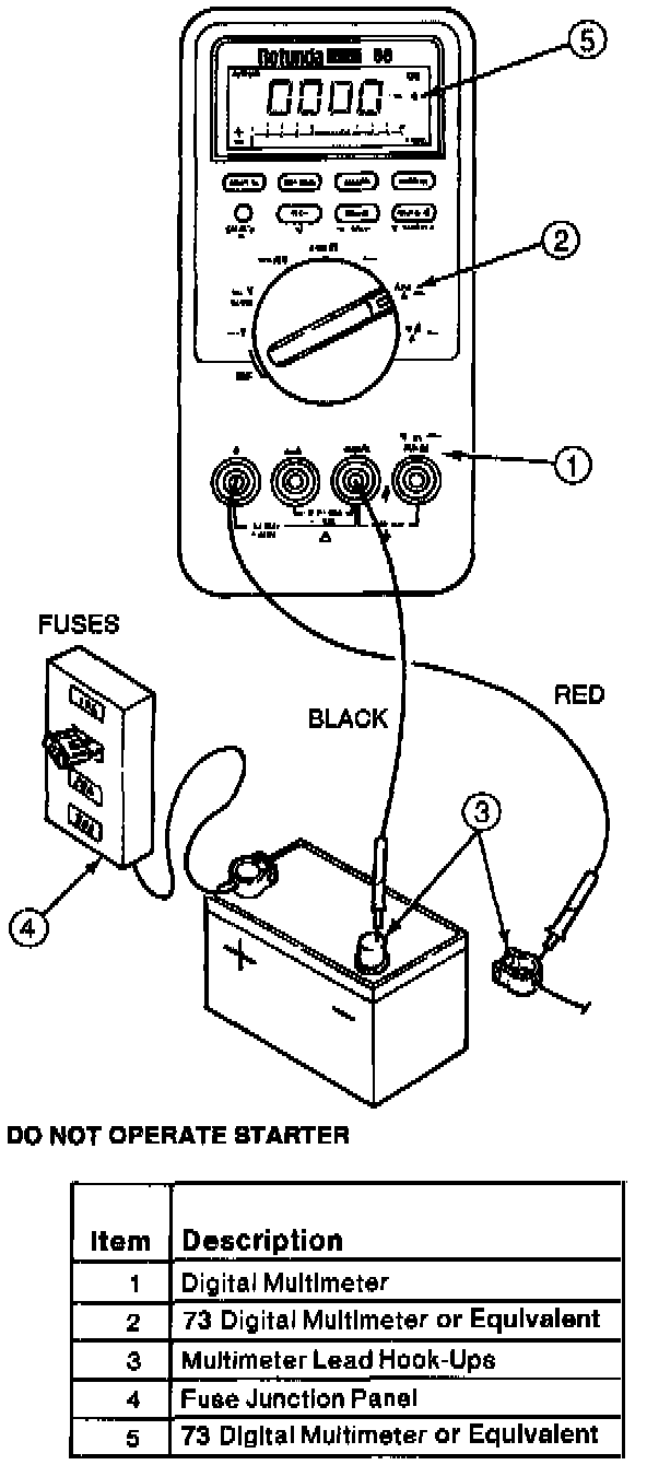 NOTE: Use an in-line ammeter between the battery positive or negative post and its respective cable.