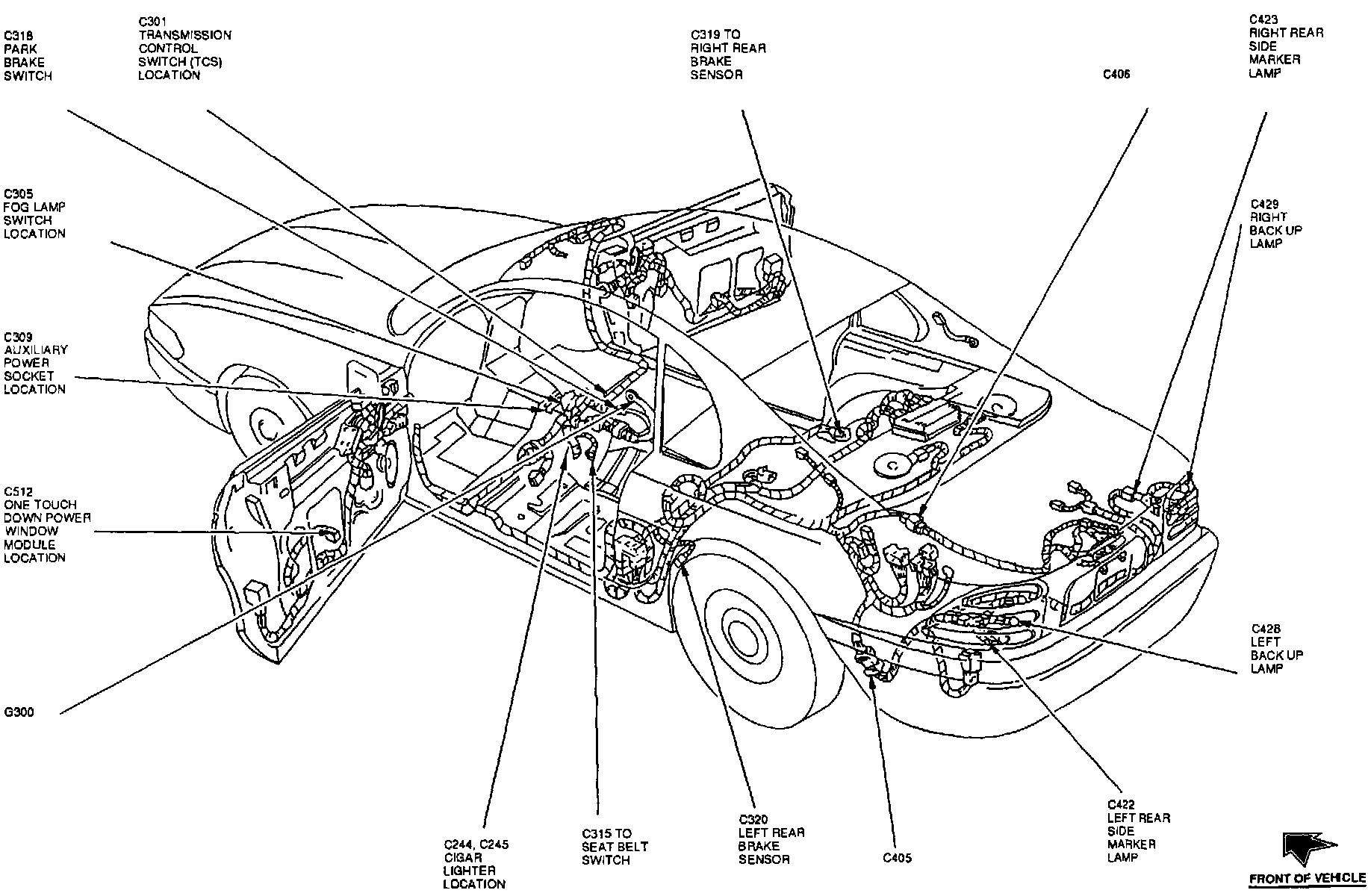 The One Touch Down Power Window Module is located at the lower rear of the LH door.