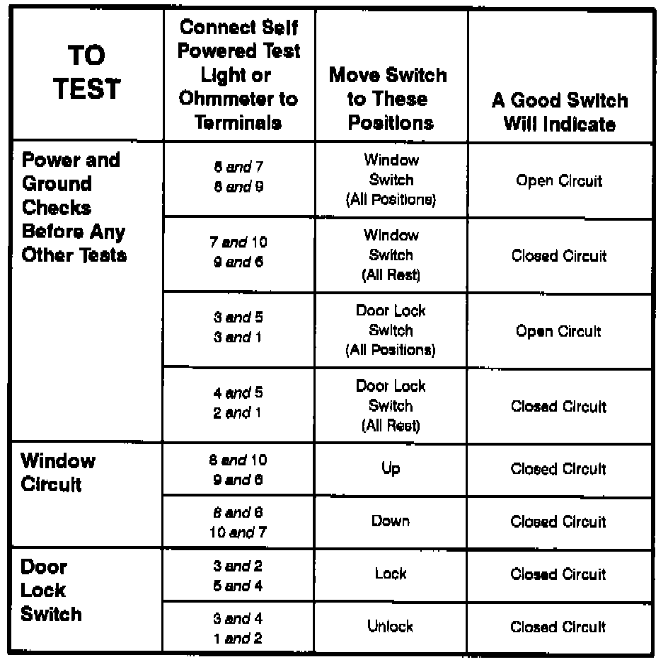 Right Window/Door Lock Control Switch - Component Testing Procedure (Coupe):