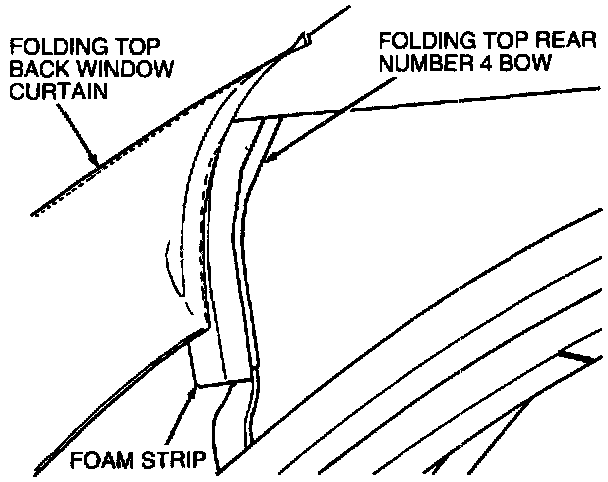 5. Install foam along the side of the folding top rear number 4 bow starting at the bottom of the rear bow corner pad.