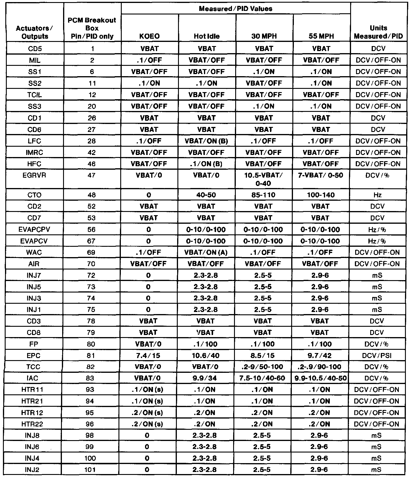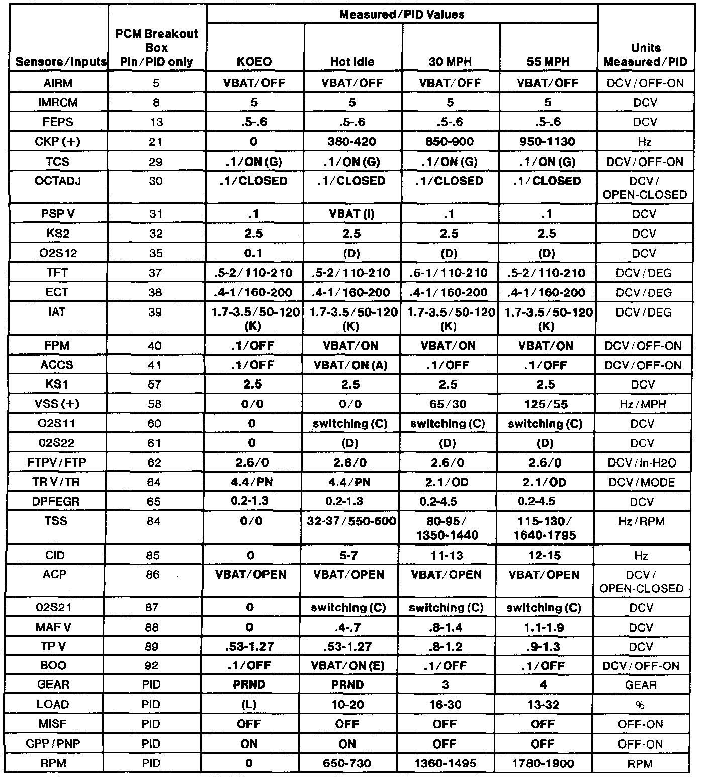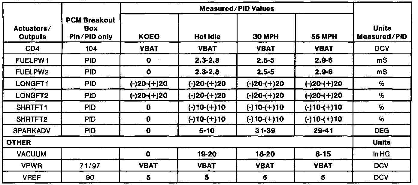(H.) Values shown are commanded by the PCM and may not be actual.