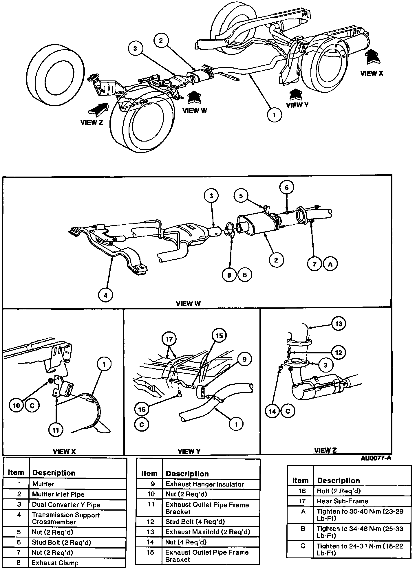 3. Position dual converter Y pipe flanges to exhaust manifolds and install new retaining nuts. Do not tighten nuts at this time.