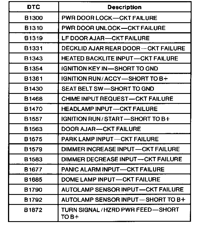 Lighting Control Module (LCM) Wiggle Test DTC Index