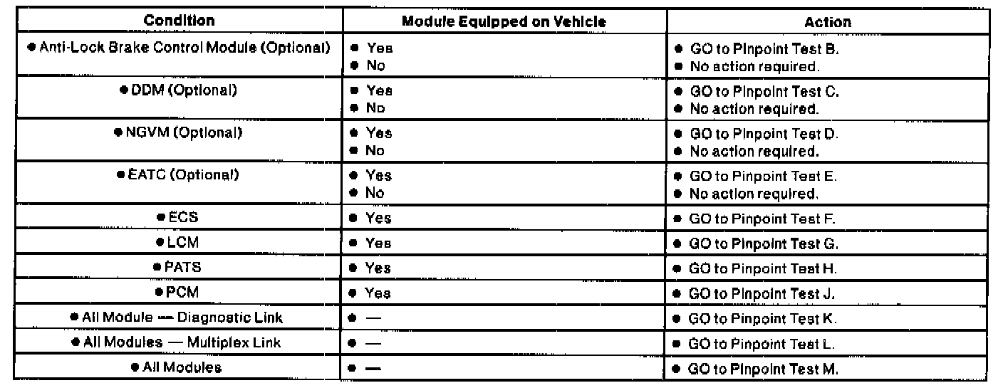 Module Fault Table