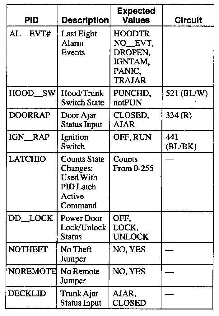 The Escort uses only a subset of the PIDs that are displayed on the RAP PID menu. The following PIDs apply for the Escort.
