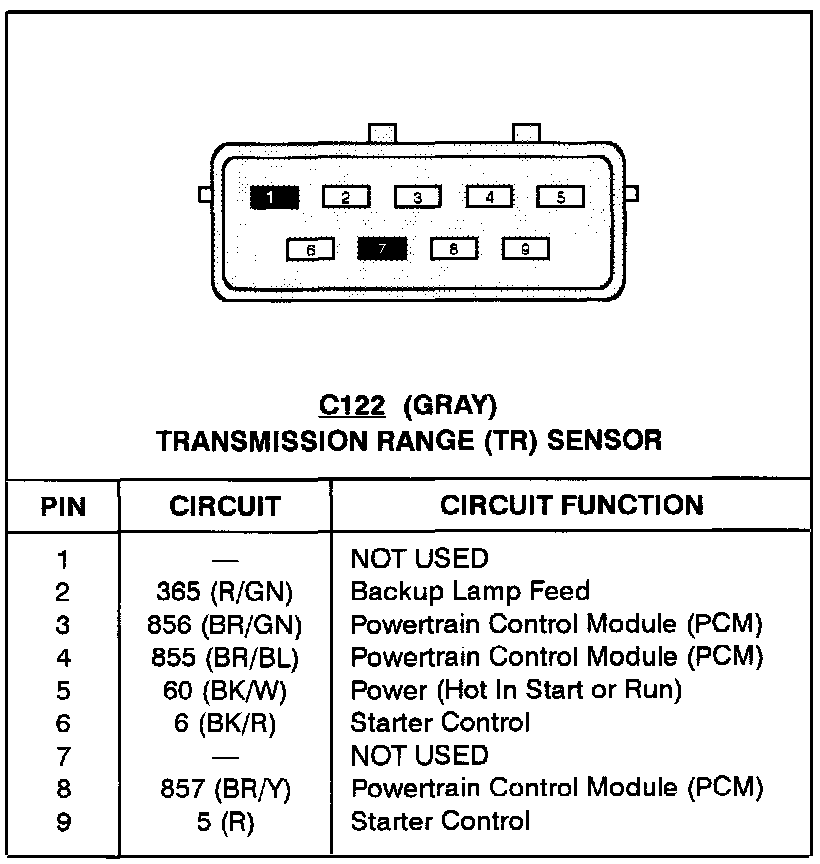 Transmission Position Sensor/Switch: Diagrams