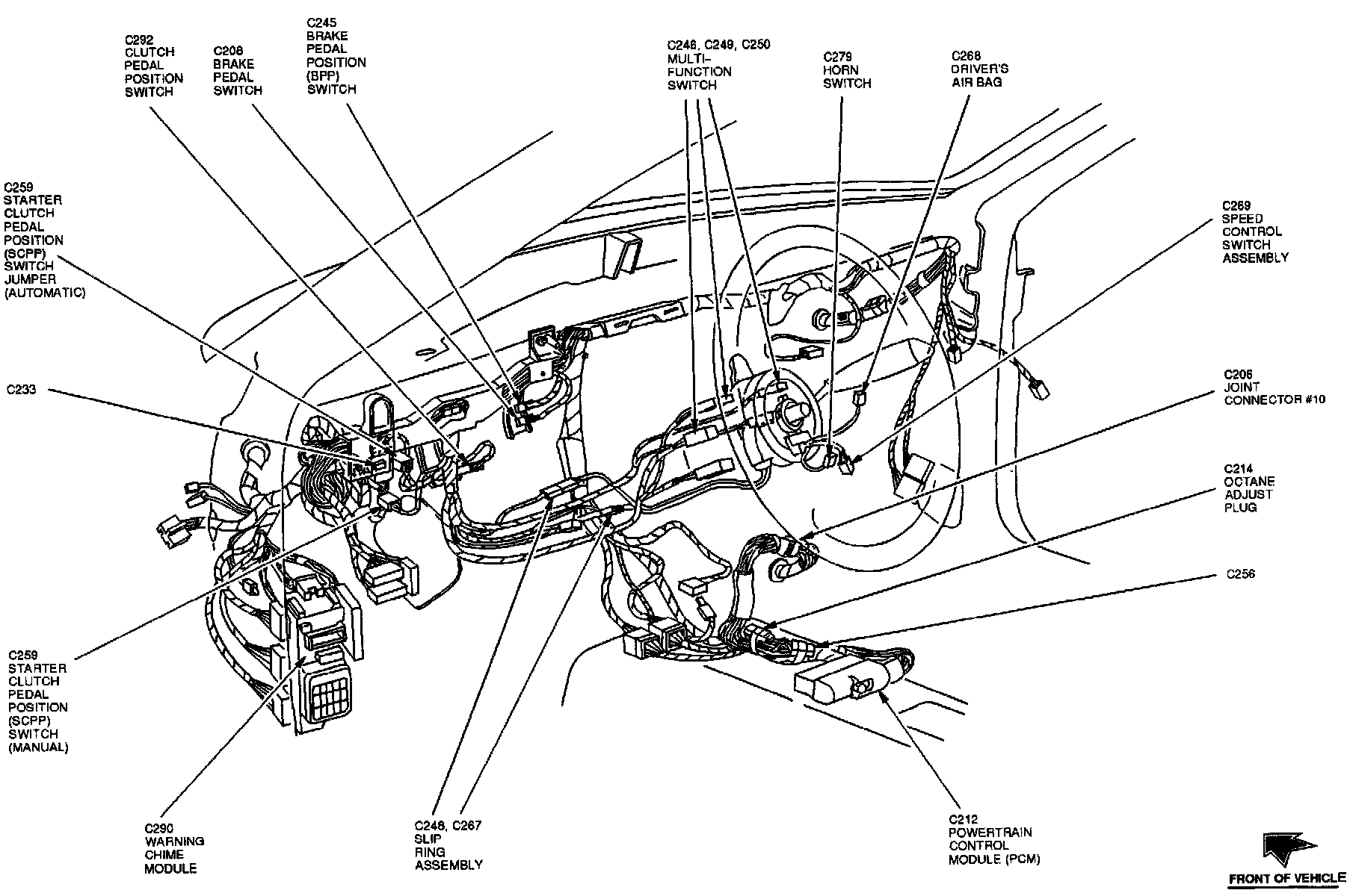 The Powertrain Control Module is located below center of the instrument panel.