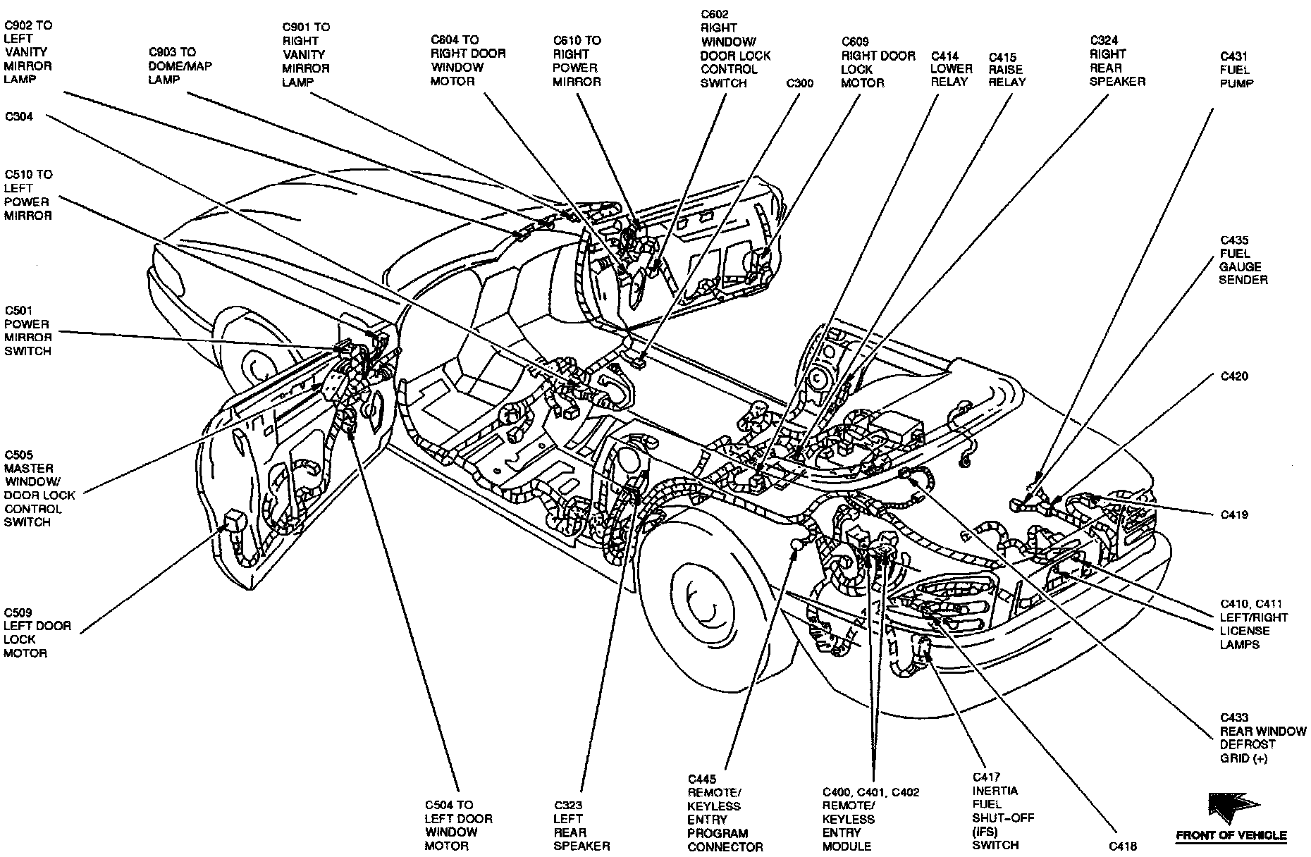 The Remote/Keyless Entry Program Connector is located at LH rear of trunk, behind side trim.