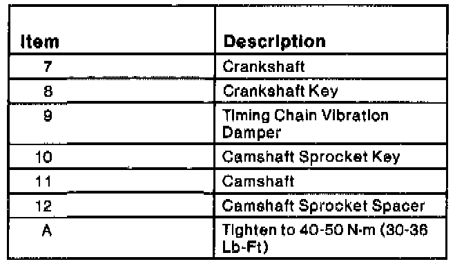 5. Install retaining bolt and washer at end of camshaft. Tighten to 40-50 Nm (30-36 ft. lbs.).