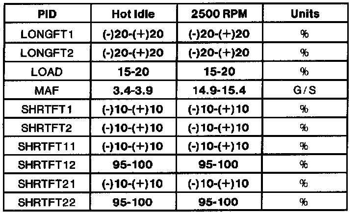 - All generic OBD II readings under no load (PARK or NEUTRAL).