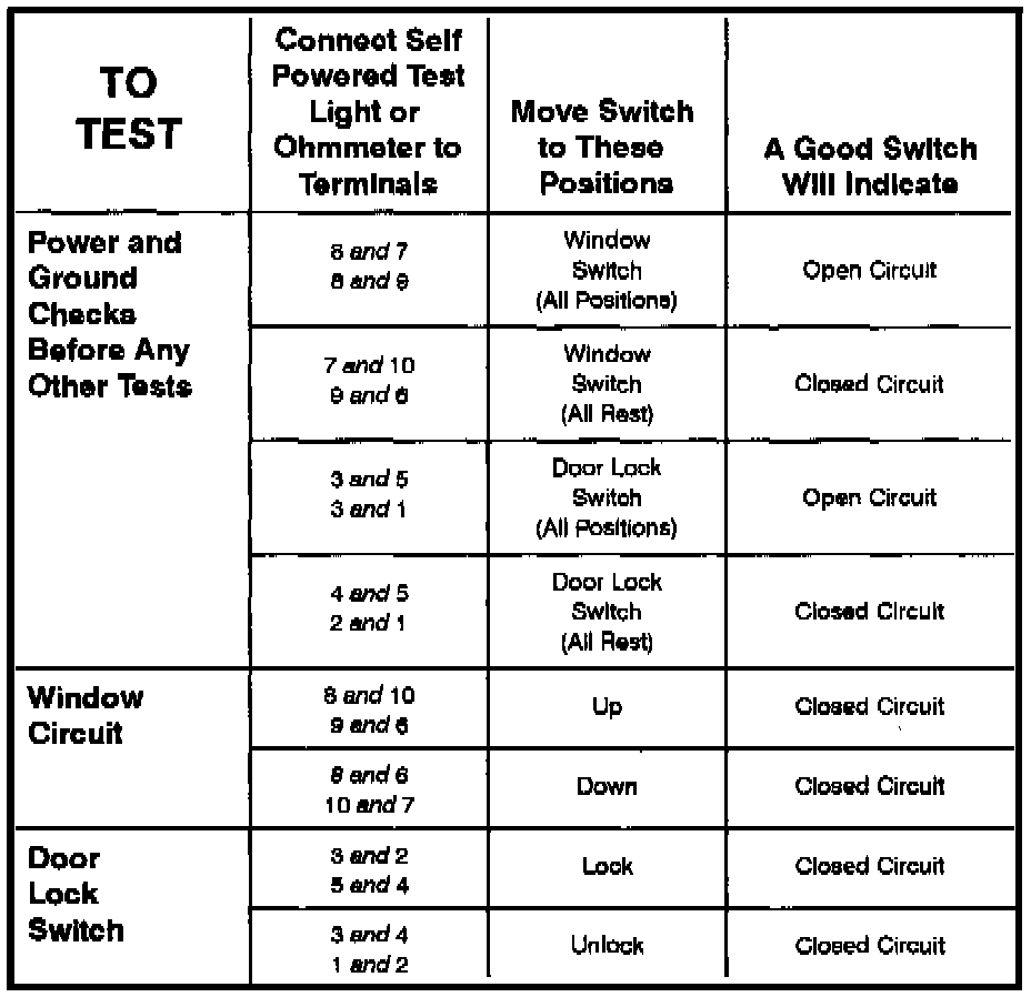 Right Window/Door Lock Control Switch - Component Testing Procedure: