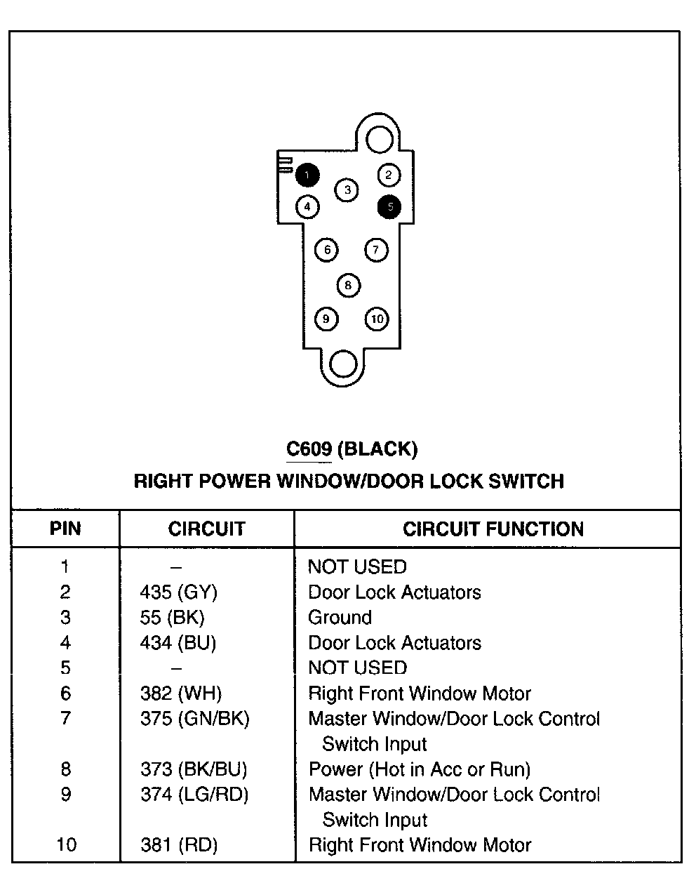 Right Power Window/Door Lock Switch