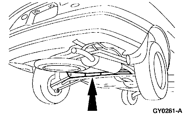 ^ MAKE SURE THE JACK AND JACK STANDS ARE PROPERLY LOCATED TO PREVENT THE VEHICLE FROM FALLING.